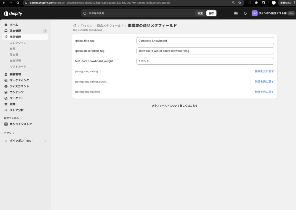 Shopifyの商品コピーの仕様上、メタフィールドの情報に同期ずれが発生し、正しくクリアされない場合がございます。