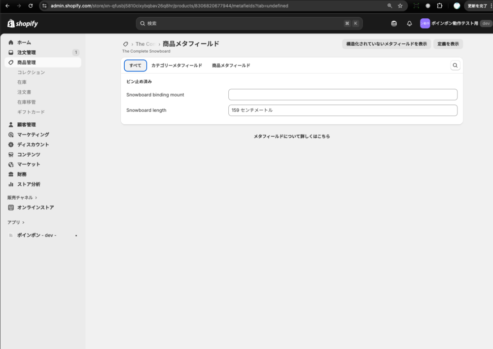 商品メタフィールドの画面が表示されたら右上にある「構造化されていないメタフィールドを表示」を選択します。