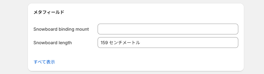 対象の商品ページを開き、商品メタフィールドの「すべて表示」を選択してください。